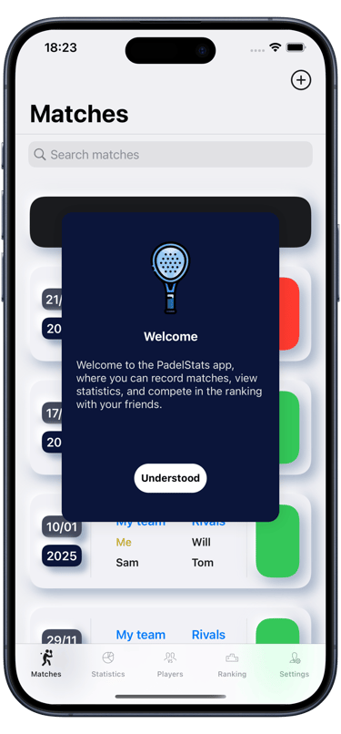 Descubre una nueva forma de registrar y controlar tus partidos de manera precisa y con un diseño moderno. Juega, mejora y domina la pista con la mejor herramienta para todos los jugadores de pádel.
