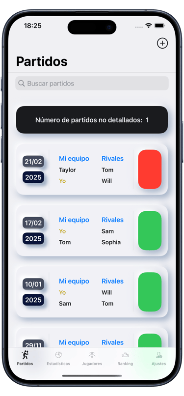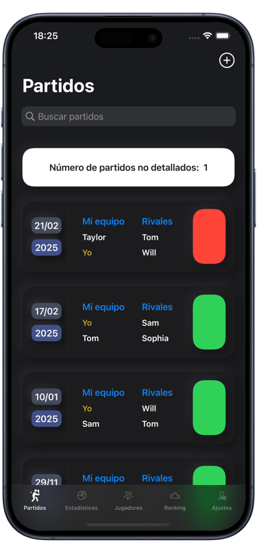 Lleva un seguimiento detallado de tus partidos. Busca partidos con tus amigos y mira quien ganó la última vez que os enfrentasteis.