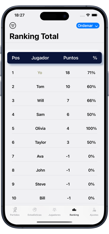 Compite en un ranking contra tus amigos, personaliza el ranking por años o desde el comienzo y compara el porcentaje de victorias.