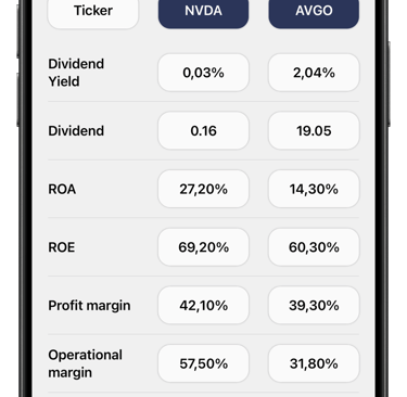Analiza y contrasta datos claves de diversas acciones para ayudarte en la toma de decisiones.