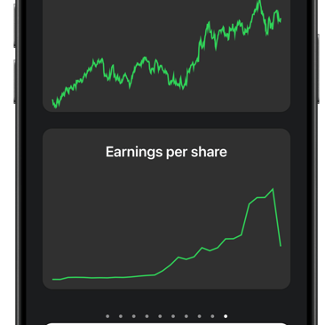 Visualiza gráficos interactivos de la cotización y los EPS de una compañía.