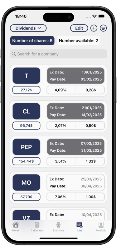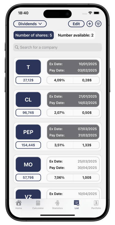 Filtra, sigue acciones de dividendos y accede fácilmente a aquellos que puedes recibir.
